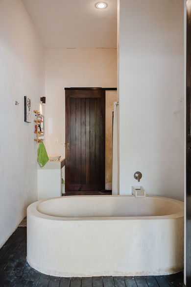 The courtyard of the home connects all the rooms, and features a "crying wall" fountain.